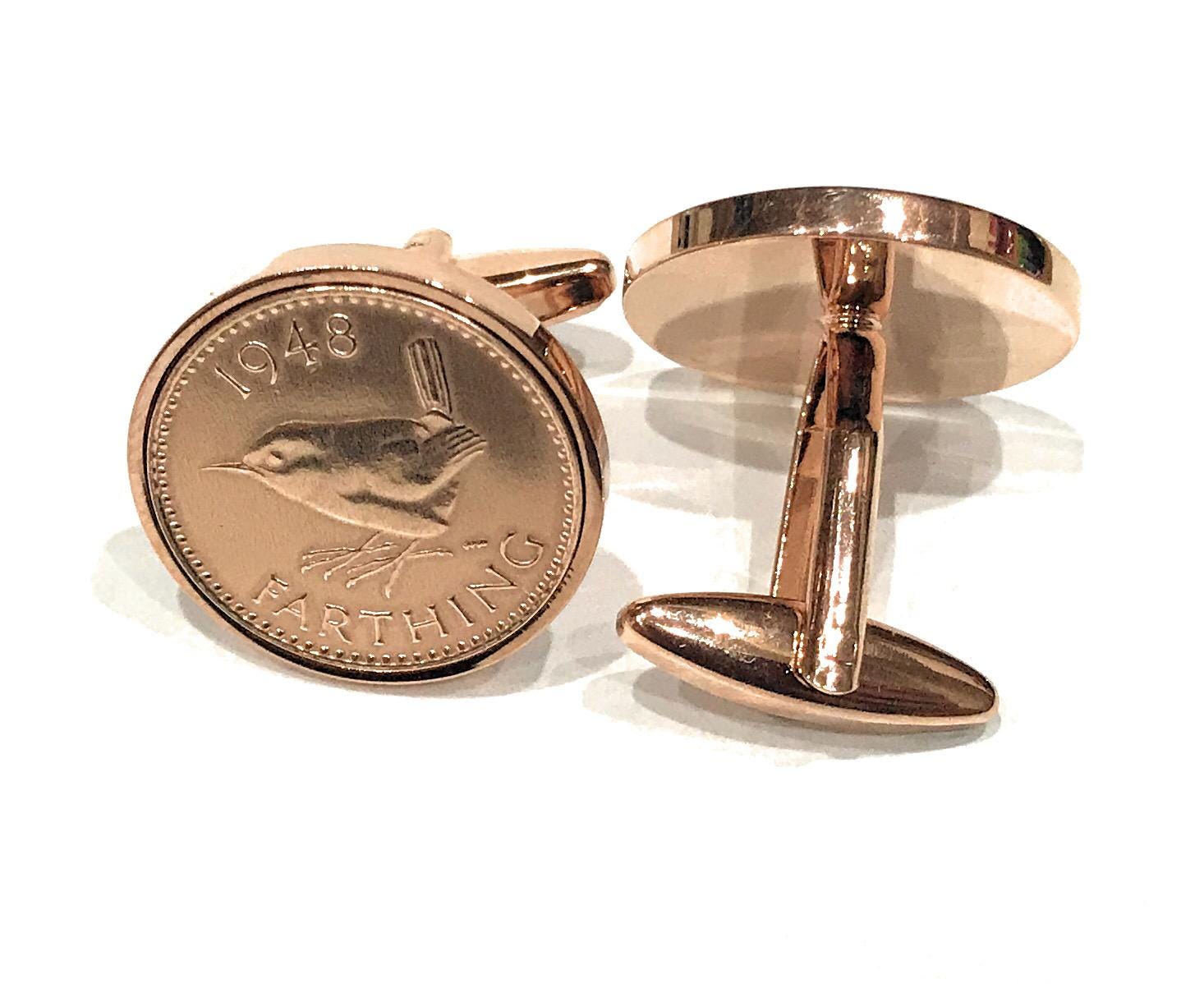 1948 Farthing Coin Cufflinks 77th Birthday Gift: Rose Gold Plated