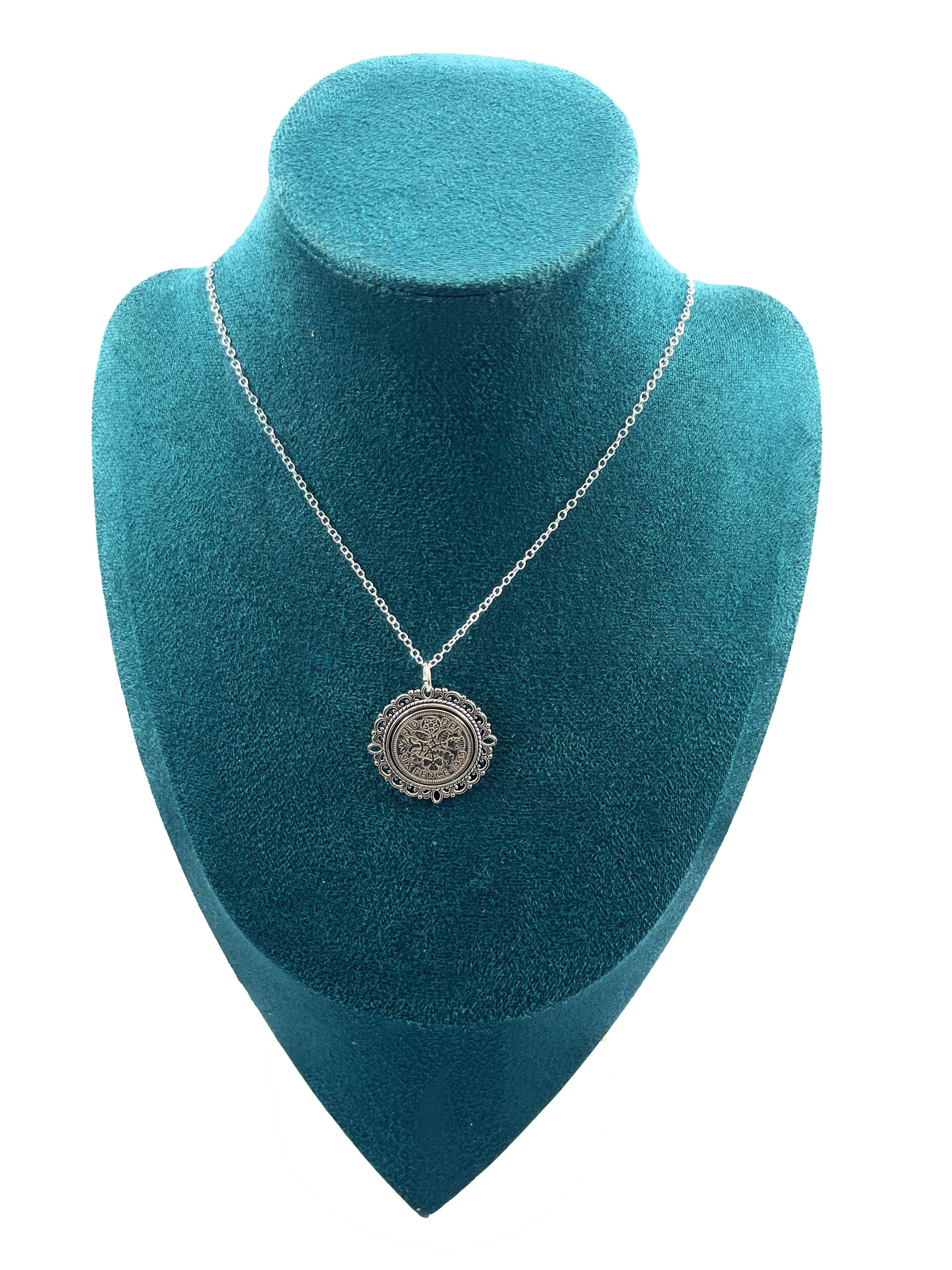 Genuine Circulated Sixpence Mounted on a Tibetan Silver mount with a 18 inch Sterling silver chain 1930 coin