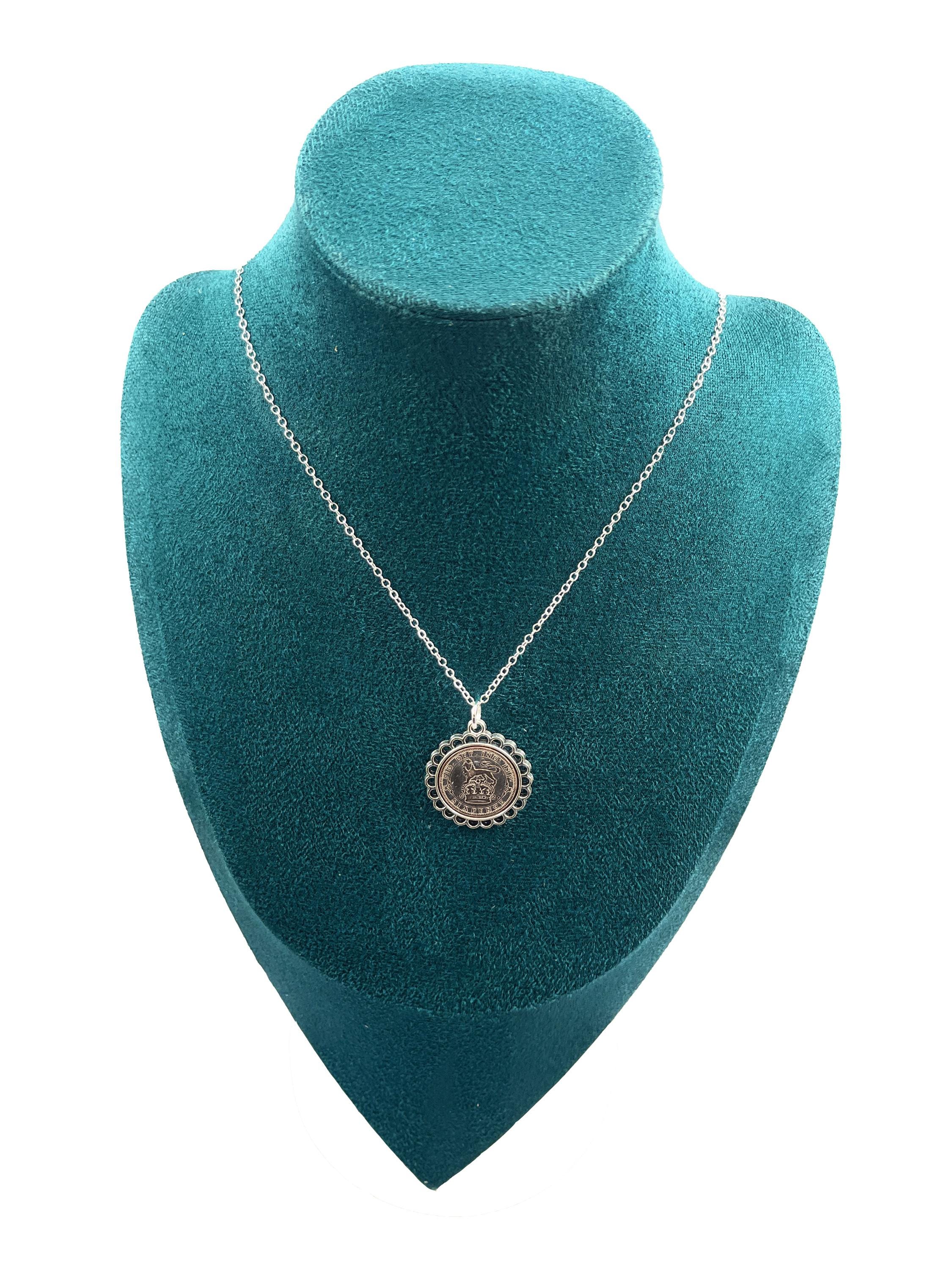 Genuine circulated 1920 105th birthday gift coin mounted in a Tibetan Silver mount with 18 inch Sterling Silver chain