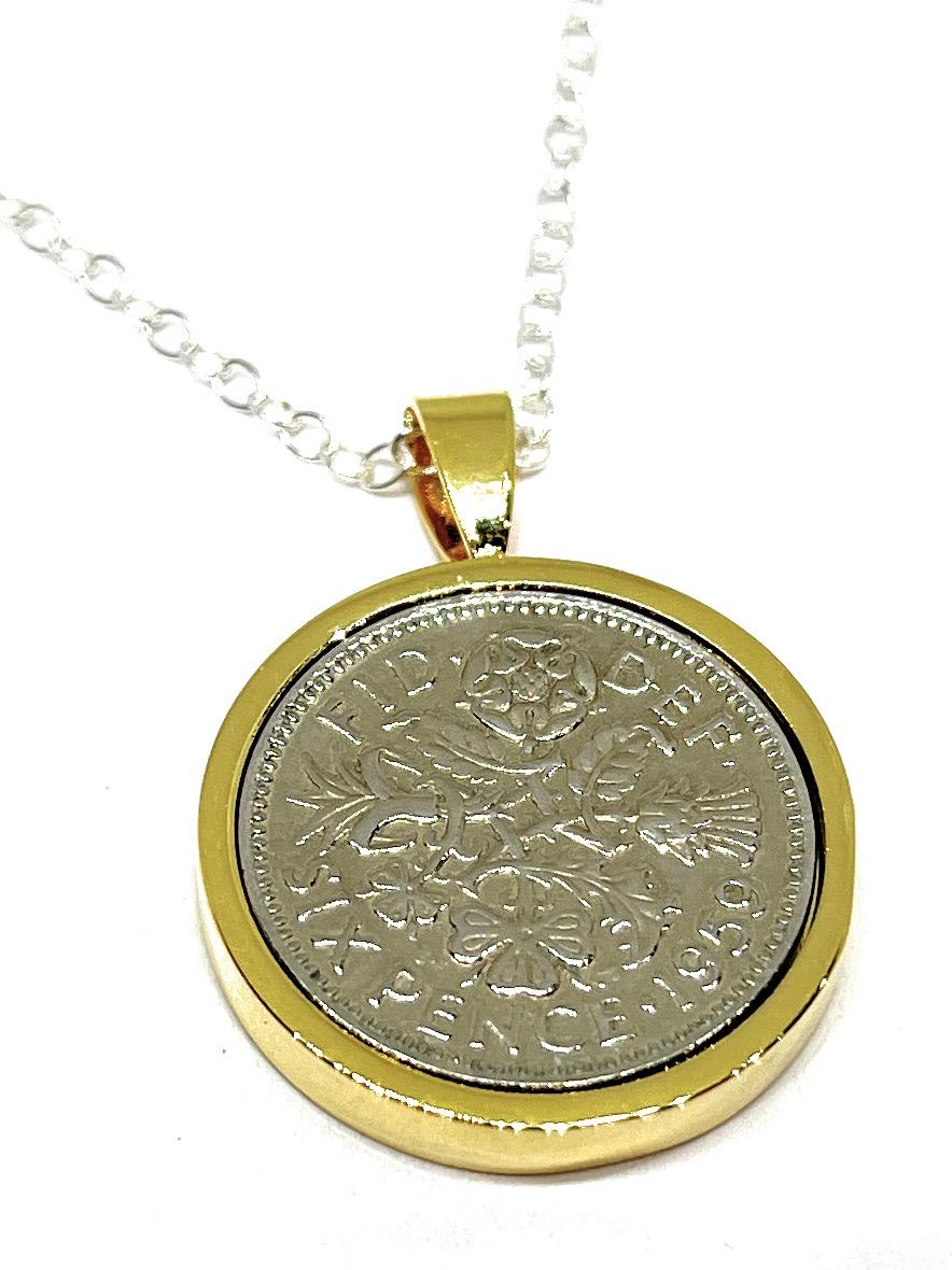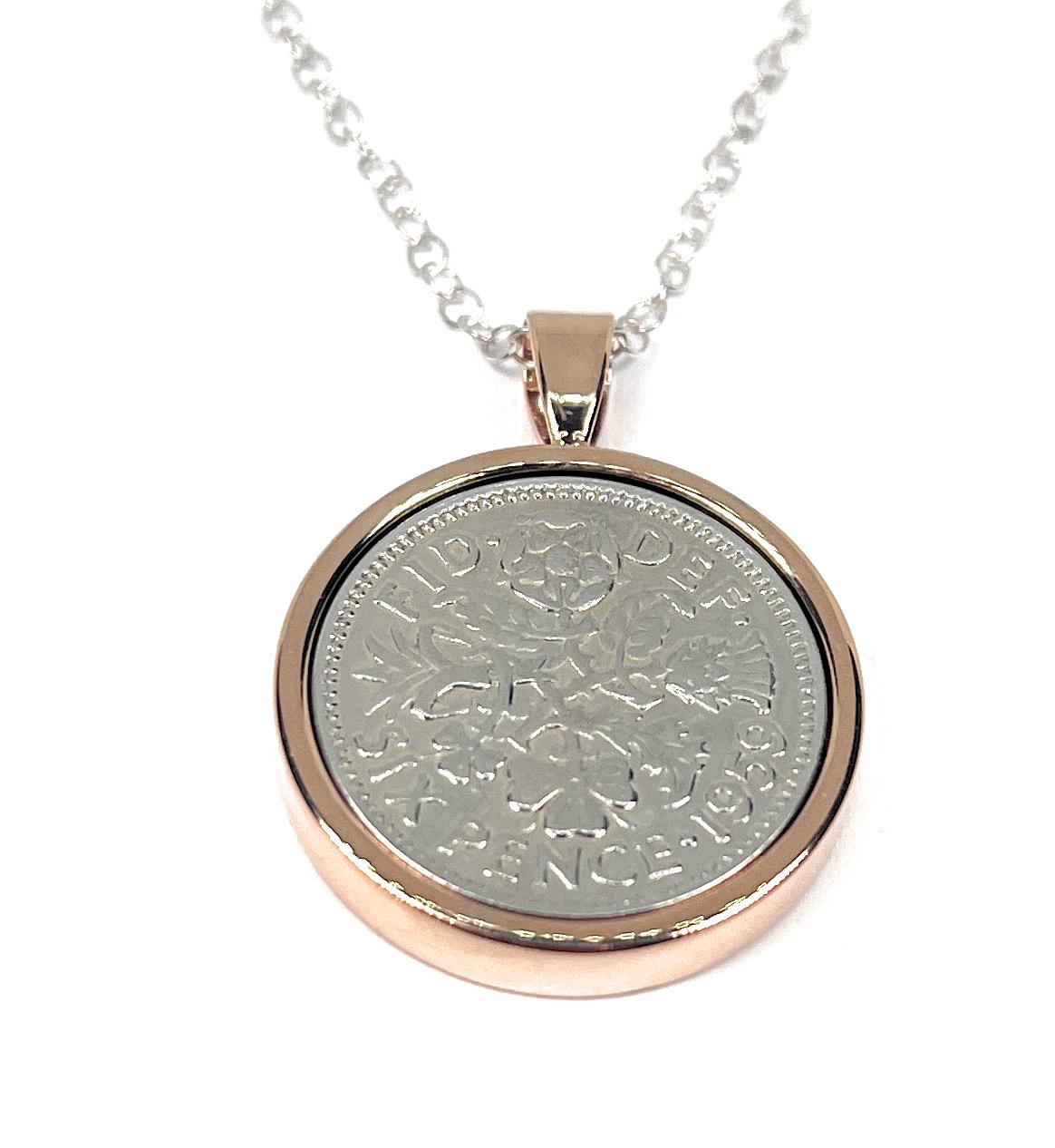 1959 66th Birthday Gift Sixpence Pendant : Silver, Gold or RoseGold Plated Backs