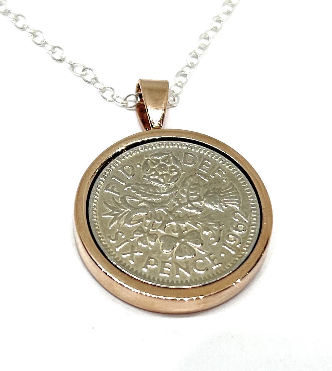 1962 Sixpence Pendant 63rd Birthday Gift : Silver, Gold or RoseGold Plated