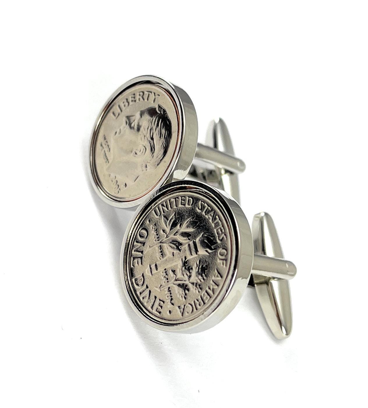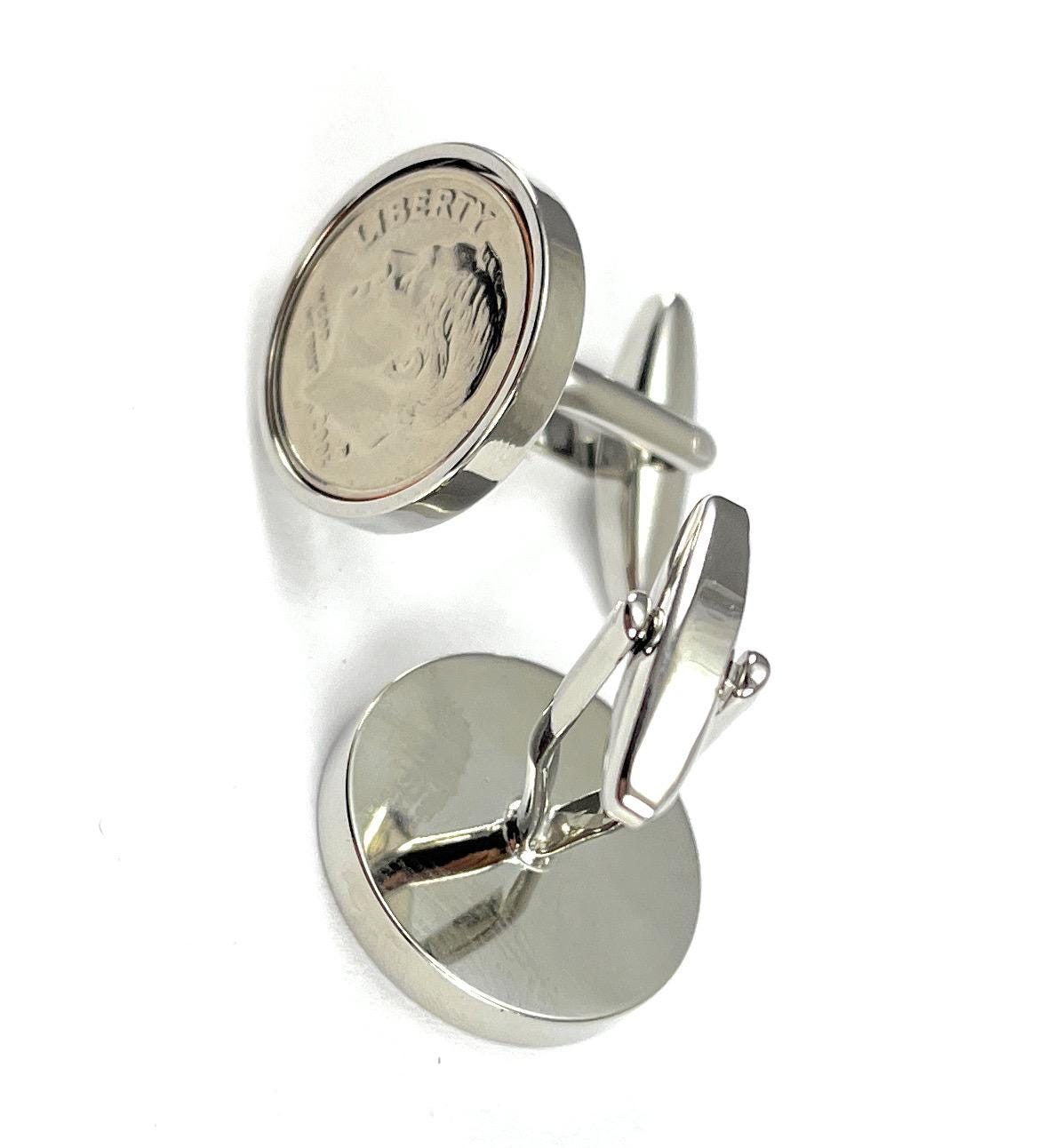 Genuine American Dime coin cufflinks mounted in Silver plated cufflink backs.